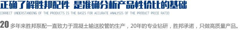 山東勝邦泵車配件有限公司始建于1995年,位于聊城西郊張爐集工業區,北靠濟館高速公路,東臨京九鐵路,坐落在京杭大運河岸,地理位置優越,環境幽雅,交通便利,是目前專業的混凝土輸送膠管生產企業。