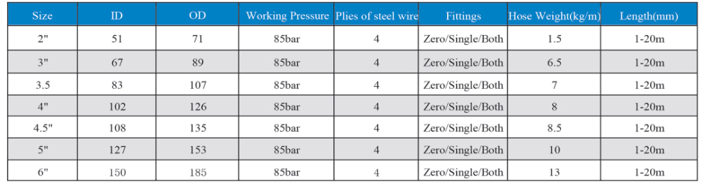 鋼絲采用拉伸強度高的高碳合金的鋼簾線,增加了膠管的承壓,并且減輕了膠管的重量,方便客戶使用